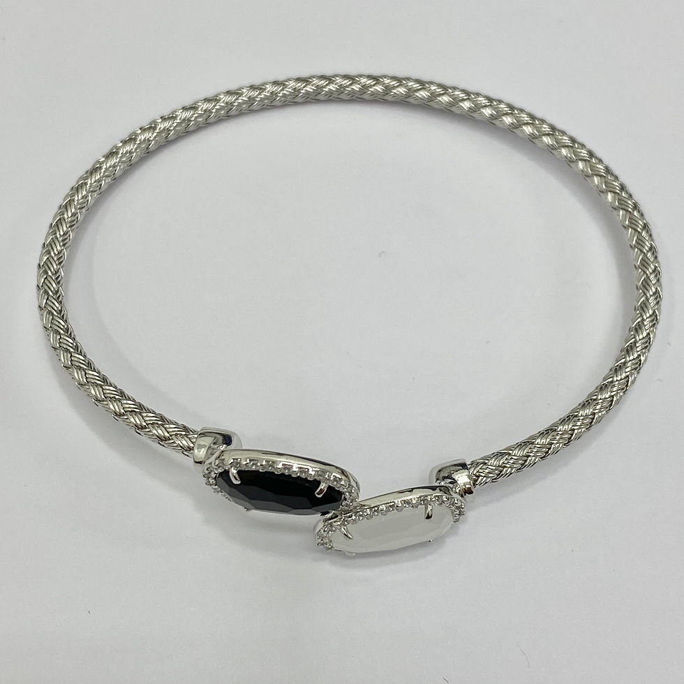 Brazalete trenzado de plata rodiada con circonitas, ónix y Ágata